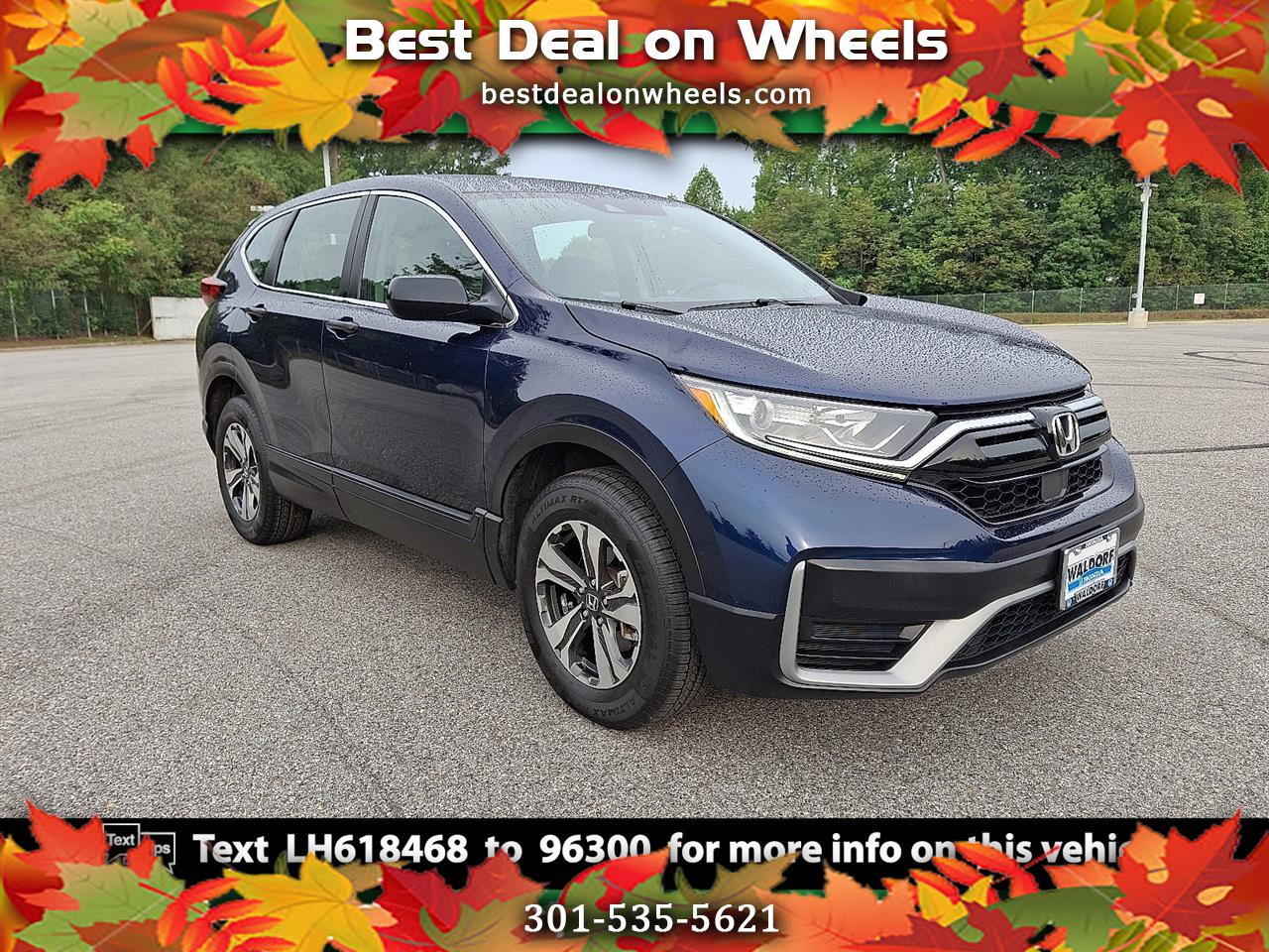 CR-V LX, HondaTrue Certified Certified, 4D Sport Utility, AWD, **HONDA CERTIFIED**, **ONE OWNER**, **CLEAN CAR FAX**, **USB READY**, **BLUE TOOTH ENABLED**, **BACK-UP CAMERA**, **LOCALLY OWNED AND SERVICED**, **MD STATE INSPECTED**. 2020 Honda CR-V LX CARFAX One-Owner. 27/32 City/Highway MPGHondaTrue Certified Details:* Warranty Deductible: $0* Vehicle History* Limited Warranty: 24 Month/100,000 Mile (whichever comes first) after new car warranty expires or from certified purchase date* 182 Point Inspection* Vehicles purchased within New Vehicle Limited Warranty period: extends New Vehicle Limited Warranty to 5 years*/60,000 miles*. Honda Care Roadside Assistance for 2 year/100,000 miles (whichever occurs first). Up to two complimentary oil changes within the first year of ownership. SiriusXM 90-Day Trial.* Powertrain Limited Warranty: 84 Month/100,000 Mile (whichever comes first) from original in-service date* Roadside Assistance* Transferable Warranty*** CALL US AT***1-301-843-8700 OR VISIT US ON THE WEB AT*** WWW. Visit us on the web at www.waldorfhonda.com.